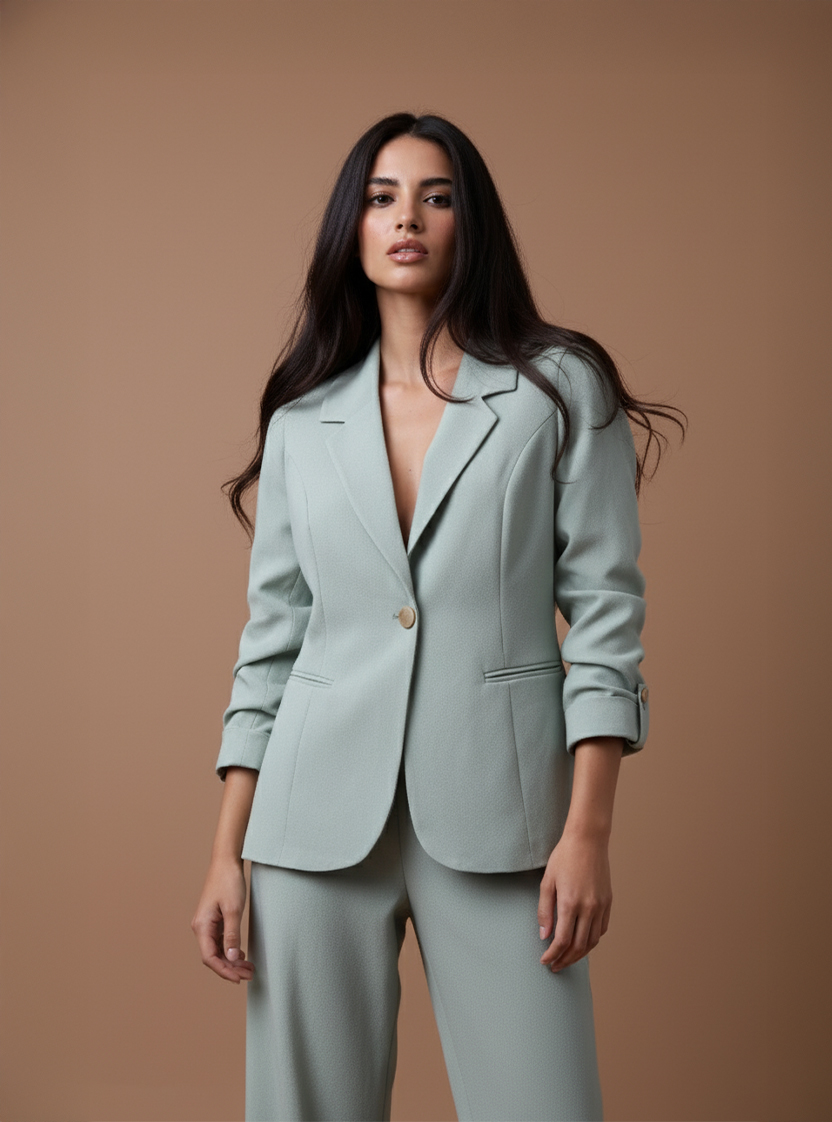 Crafted with modern elegance in mind, this women’s suit combines sleek tailoring with refined feminine details. The structured silhouette and clean lines create a timeless look that fits every occasion.