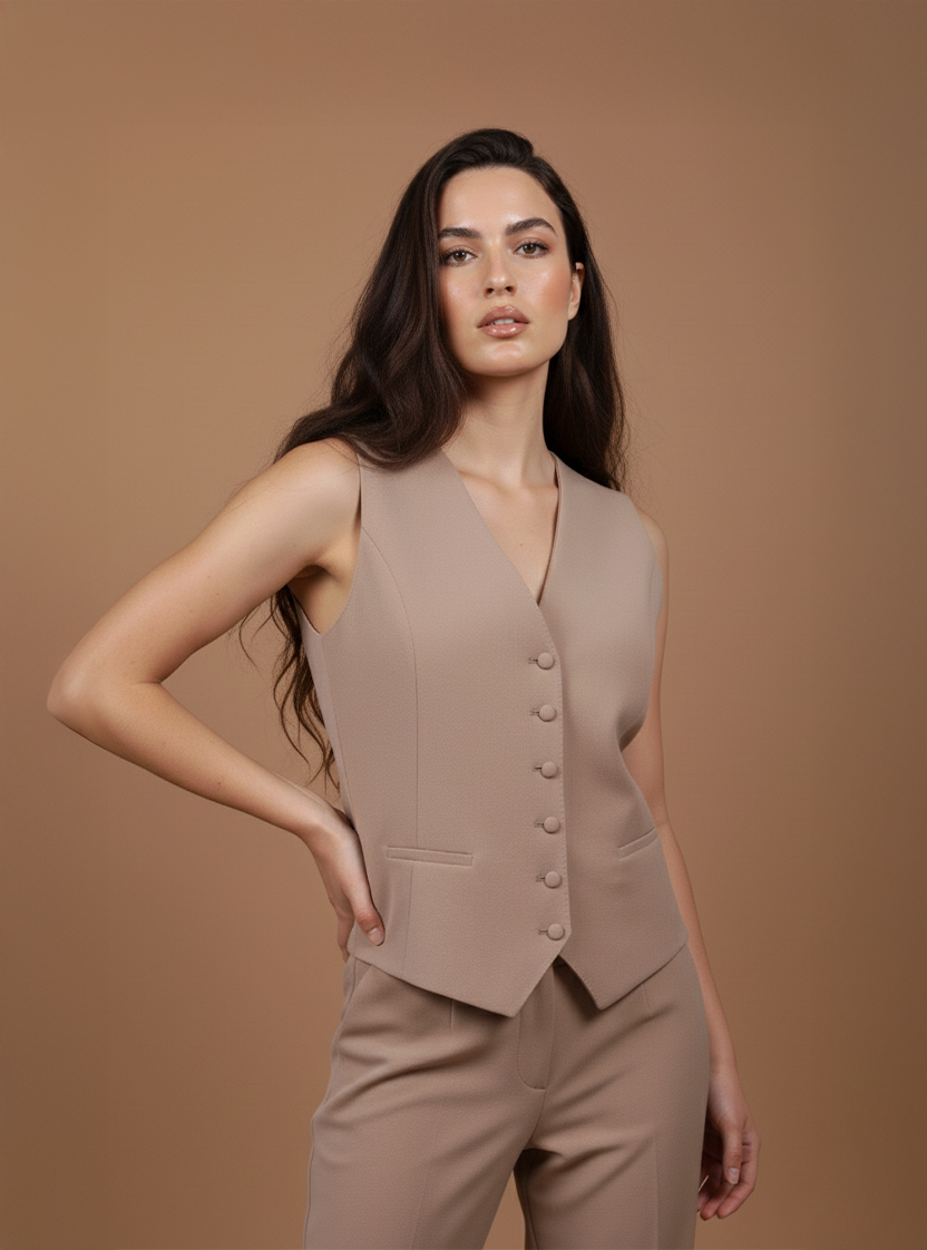 Crafted with modern elegance in mind, this women’s suit combines sleek tailoring with refined feminine details. The structured silhouette and clean lines create a timeless look that fits every occasion.