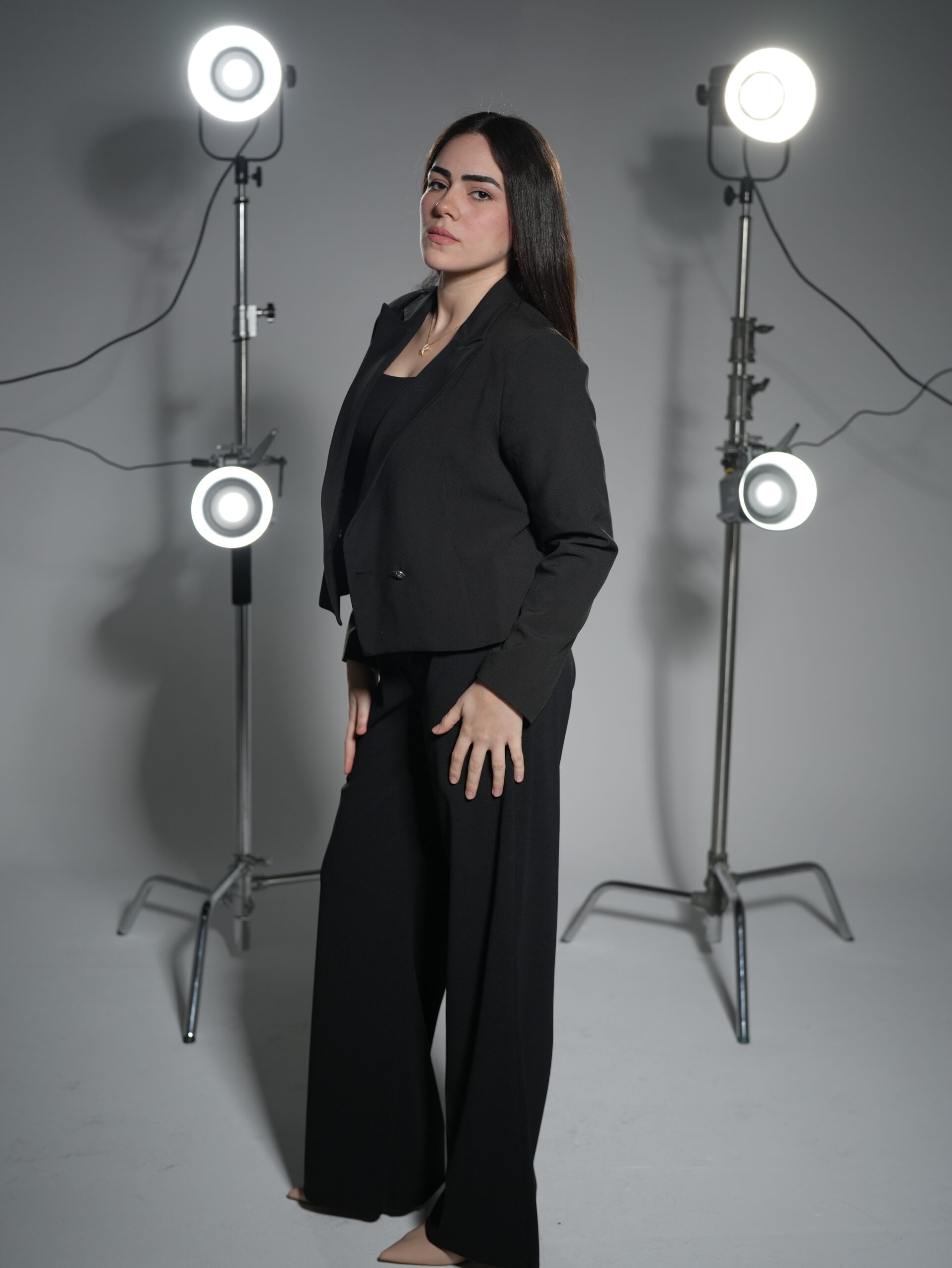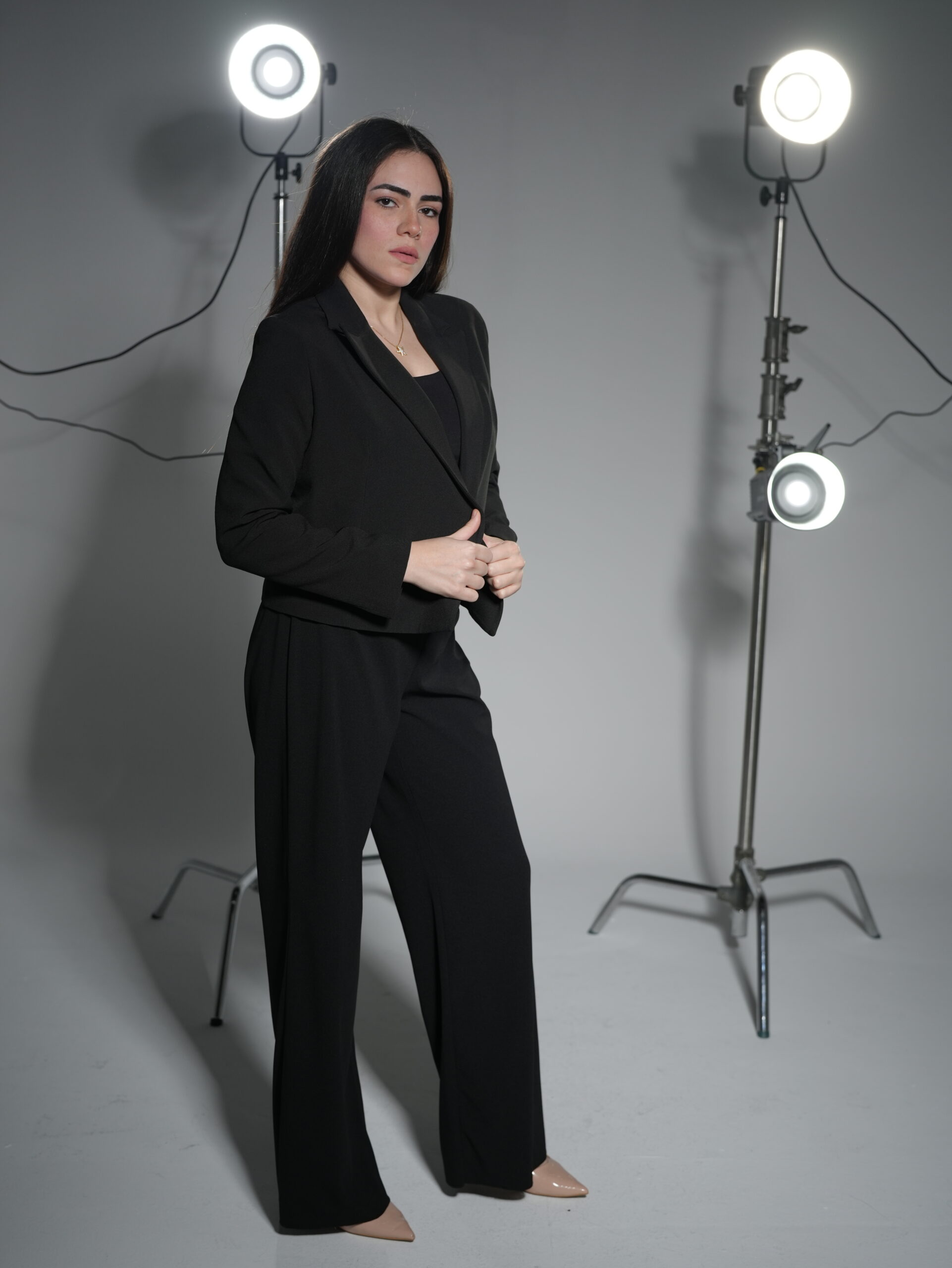 Elegant black women’s suit crafted from imported Turkish crepe fabric, featuring a refined silhouette, comfortable all-day wear, and a polished look — perfect for office wear, formal occasions, and stylish outings.